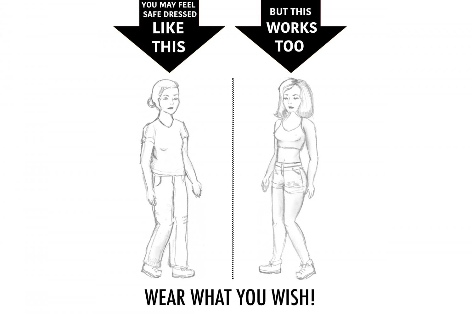 It took me a while to come to the realization that, not only should I be comfortable in my body, but the choice I make every day on what to wear should be based on one simple thing: what I want to wear. I now refuse to not wear a certain clothing article just because I’m afraid it will draw too much-unwanted attention or that someone will look at me as a sexual object. By doing the opposite, I feed into rape culture. I would feed into the belief that what I wear could directly lead a man to sexually assault me.
