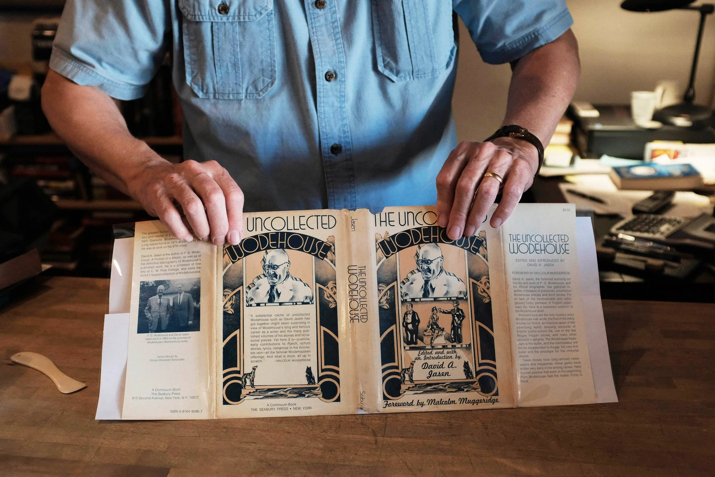 After placing a new dust jacket on an old cover, Boyd Davis shows the finished result of The Uncollected Wodehouse. Davis shares that he has over 38,000 books in his store. “I didn’t expect it to be a financial bonanza or anything like that, you know. I hoped to get past breaking even, which is exactly why I use my small navy check and social security to actually live.” Next Chapter Books in Canoga Park, California. Tuesday, October 5, 2021. (Anna Sophia Moltke | The Corsair)