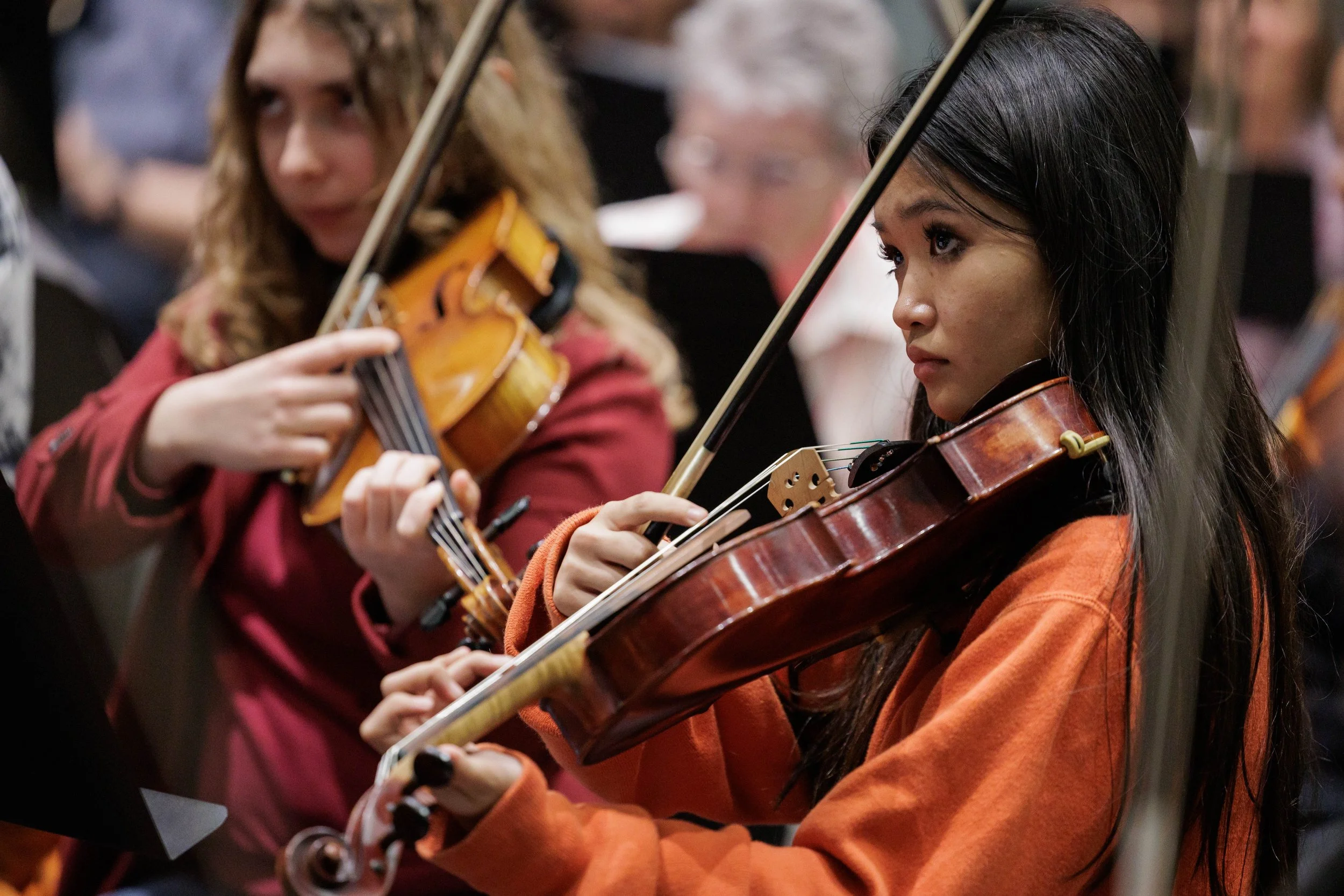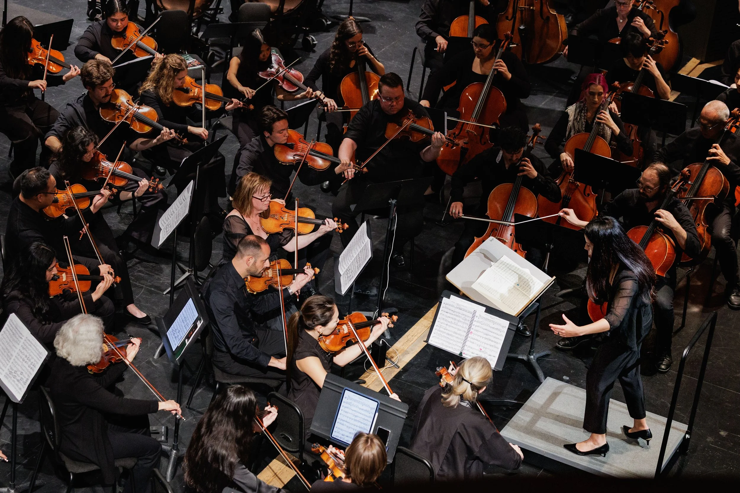 The musicians of the Santa Monica College (SMC) Symphony Orchestra wrapped up their fall season with a concert of Khachaturian, Bizet and Tchaikovsky, led by conductor Mercedes Juan Musotto on Sunday, Dec. 14, 2025. The orchestra performs at its home venue, the Eli and Edythe BroadStage, and rehearses at the SMC Performing Arts Center every Tuesday night.